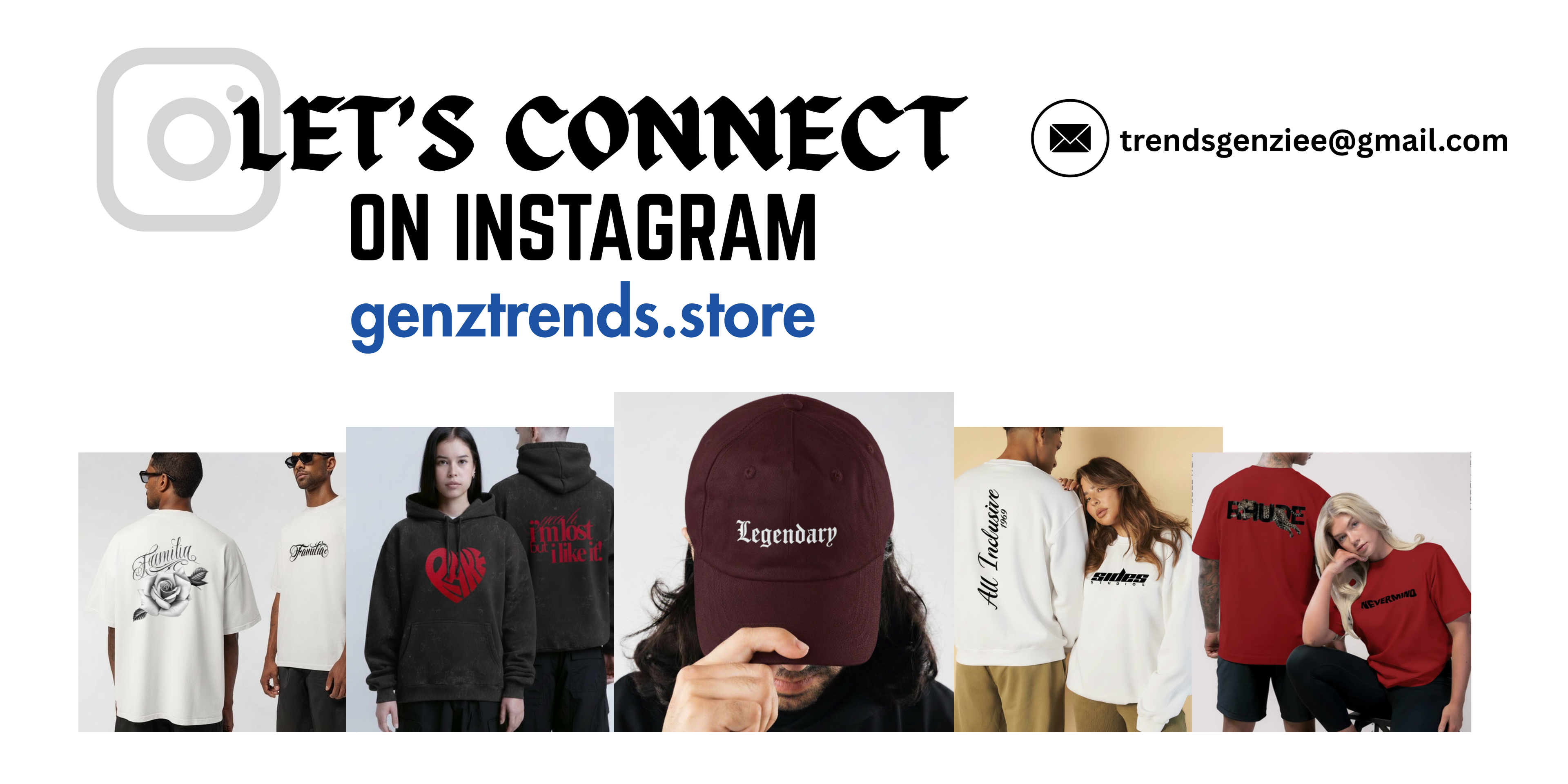 At Genz Trends, we’re more than just a clothing brand — we’re a lifestyle movement built for today’s generation. Inspired by bold individuality, fearless expression, and the ever-changing pulse of youth culture, we create fashion that speaks the language of Gen Z.Our mission is simple: to deliver trendy, oversized, and street-style essentials that let you stand out while staying comfortable. Each piece is designed with a mix of style, quality, and affordability, so you can own the vibe without breaking the bank.